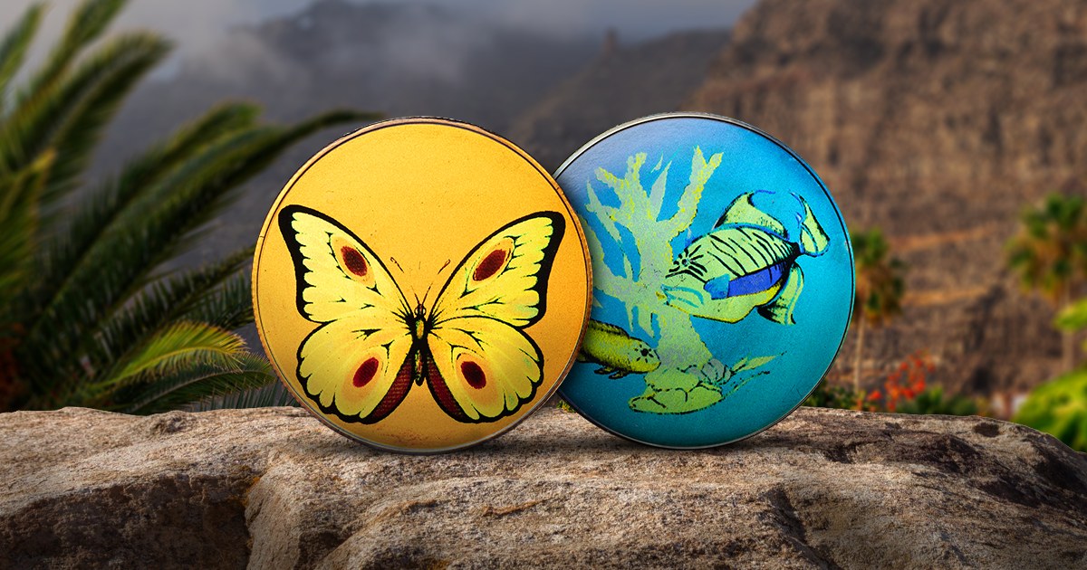 The obverse features a striking holographic image of a butterfly. The hologram creates a dynamic and colorful effect, making the butterfly appear to change colors and move as the coin is tilted. This innovative design reflects São Tomé and Príncipe’s natural heritage and technological artistry.