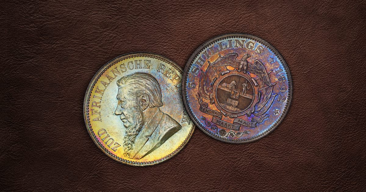 Silver shillings from the ZAR period are highly collectible, with values ranging from $100 to $1,000 depending on condition and rarity. Coins from 1874 are rarer and more valuable than those from the Kruger era (1892-1897). Despite this, coins like the 1892 South Africa Silver 5 Shillings still command a significant premium in higher grades.
