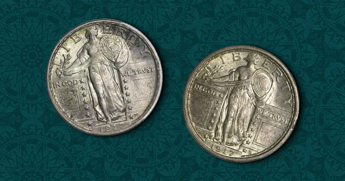 The Standing Liberty quarter saw two primary variations in its series: Type 1 and type 2.