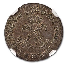Various coins were struck from the Silver alloy billon between 1709 and 1760. These include the 15-denier, 30-denier, half sou and sou marque. Most of these dates are very hard to find and the half sou of 1740 is the only common date. Dates of these billon coins after 1760 were not used in North America.