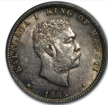 King Kalakaua truly wanted the Kingdom to have its own coinage. The King turned to a trusted friend of his, Claus Spreckels, to negotiate and mediate negotiation between the Kingdom and the United States Mint. The 1880 Hawaiian Coinage Law provided for a One Dollar, a Fifty cent, a Twenty Five cent, and a Twelve-and-One-Half cent coins. However, to be compatible with US coinage the Twelve-and-One-Half cent coin was changed to a Ten cent coin.