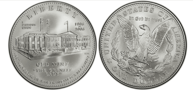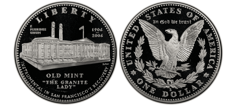 These Silver Dollars were struck, appropriately, at the San Francisco Mint, in both Uncirculated and Proof versions. Each version was offered separately, and the Proof Silver Dollar was also included in the 2006 American Legacy Proof Set. Surcharges benefitted the Old Mint as both a city museum and also as a museum depicting the California Gold Rush of 1849.