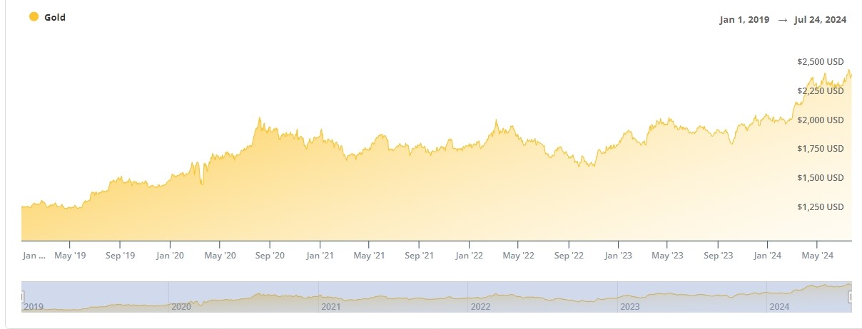 In the last five years, gold’s value has increased by 88.65%, while the S&P 500 has experienced an increase of 83.61%. In 2024 alone, gold’s price has increased by over 16%, making it one of the best investments of the year so far.